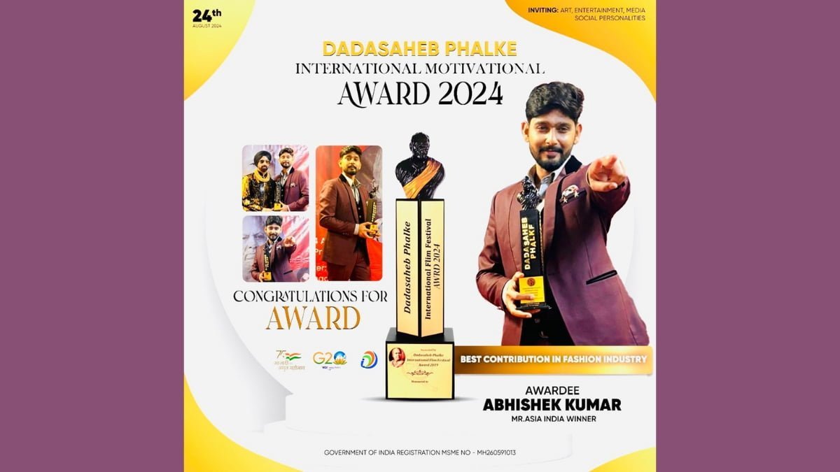 New Delhi [India] August 26: The prestigious Dadasaheb Phalke International Motivational Awards 2024 witnessed a significant moment as Abhishek Kumar was honoured with the title of Best Model and Influencer of the Year. This accolade further cements his position as one of the leading figures in the modelling and influencer industry.